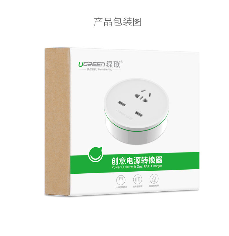 绿联多口usb充电器旅行收线 双usb充电器5v2.4a+排插小米苹果直充