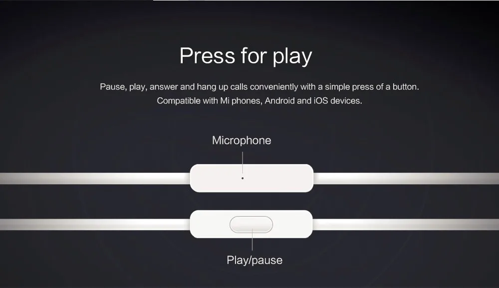 Pause,play,answer and hang up calls conveniently with a simple press of a button.u0026nbsp;Compatible with Mi phones, Android and iOS devicesu0026nbsp;(No volume control).