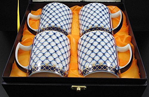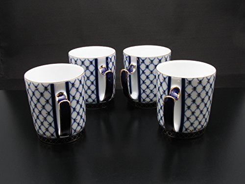 -. Feature : Lomonosov Inspired Cobalt Blue Net 4 Mug Set / Fine Porcelain 22 karat accents / Nested Gift box