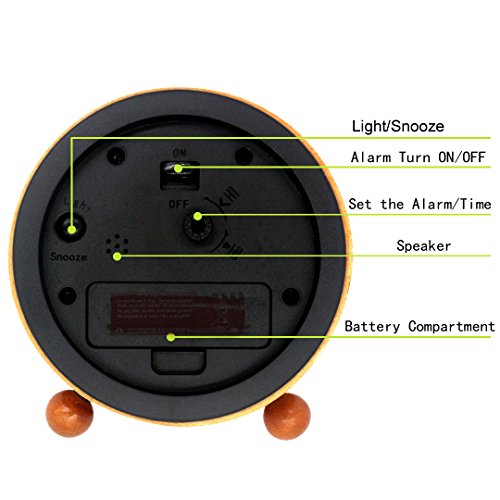 Classic Alarm Wooden Clock for office & bedroom, perfect as a special present. Silent, no ticking to ensure a good sleep and best working environment.(This clock have nightlight function) The ring is on gradually. Large number design and snooze function: press the button and then 5 minutes later the alarm will ring again Produced with natural material bringing you a healthy and fashionable low-carbon life, and number display is available at dark night. Power Supply: 1x1.5V AA Battery (Not allow other battery above 1.5V or Less 1.2V used in the clock, which cause damage to the clock)