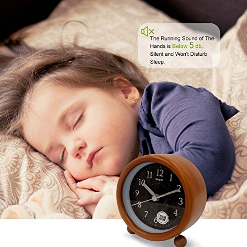 ALARM CLOCK - WOOD CLOCK WOODEN SILENT ALARM CLOCK FOR KIDS WITH NIGHTLIGHT BATTERY INCLUDED (BROWN)