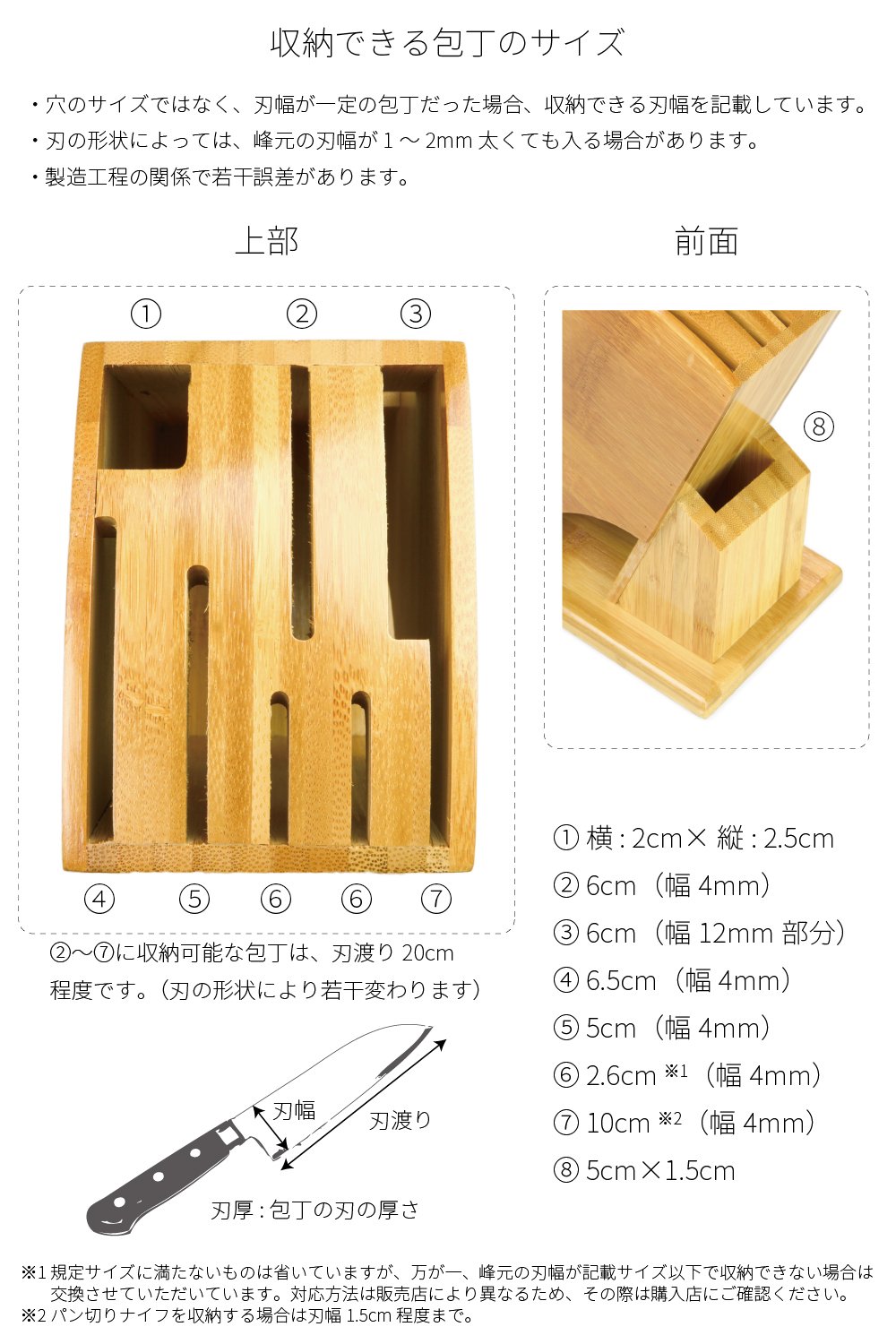 The cutting edge of knives that can be stored in ② ~ ⑦ is about 20 cm.
