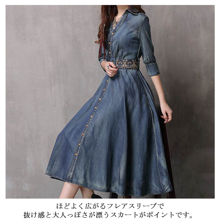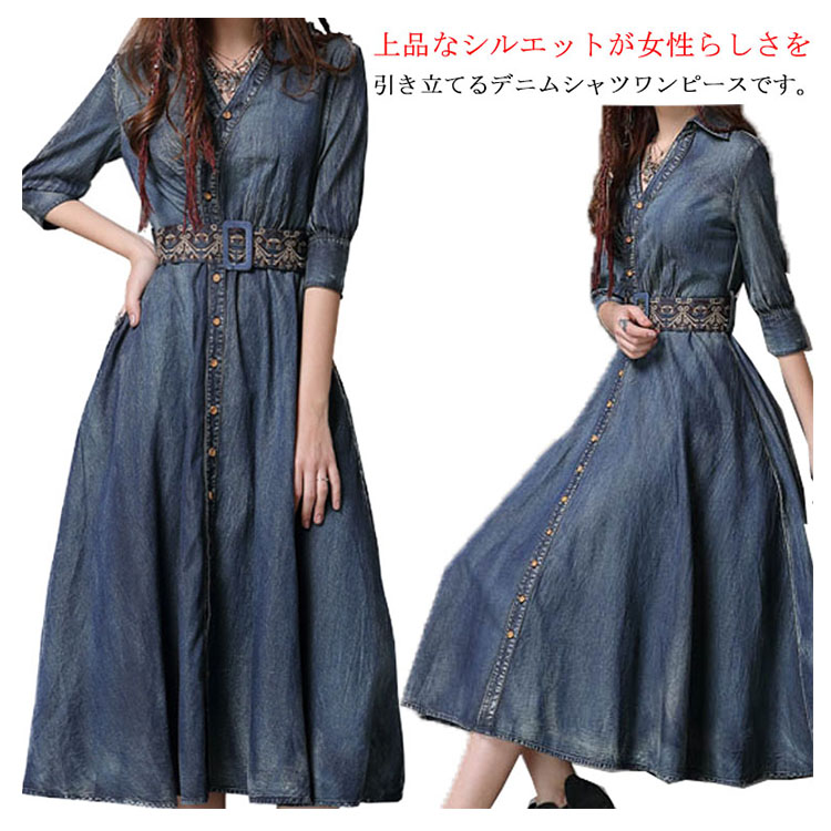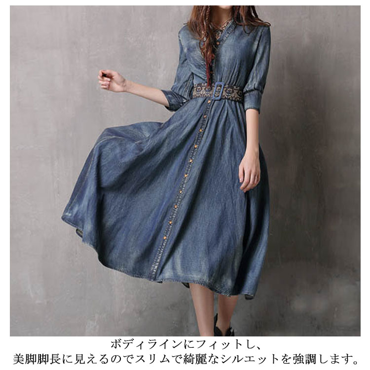 | 上品なシルエットが女性らしさを引き立てるデニムシャツワンピースです。ボディラインにフィットし、美脚脚長に見えるのでスリムで綺麗なシルエットを強調します。 ほどよく広がるフレアスリーブで抜け感と大人っぽさが漂うスカートがポイントです。オシャレ、注目の刺繍デザインがポイントオールシーズン着用できる、カジュアルコーデの定番アイテムです。 | |