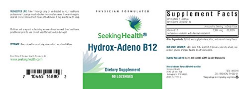 -. Binding : Health and Beauty -. Brand : Seeking Health -. EAN : 0710465148802 -. Feature : Provides 2000 mcg of vitamin B12 as hydroxocobalamin and adenosylcobalamin in each convenient lozenge. / IMPORTANT: Hydrox-Adeno B12 is manufactured for and sold exclusively by Seeking Health on Amazon.com. We DO NOT recommend purchasing this product from any other supplier. / No major allergens. No artificial flavors, sweeteners or colors. / Physician formulated. -. IsAdultProduct : 0 -. Label : Seeking Health -. LegalDisclaimer : * These statements have not been evaluated by the FDA. This product is not intended to diagnose, treat, cure, or prevent any disease. -. Manufacturer : Seeking Health -. MPN : HYAB12-60-LOZ -. PackageQuantity : 1 -. PartNumber : HYAB12-60-LOZ -. ProductGroup : Health and Beauty -. ProductTypeName : HEALTH_PERSONAL_CARE -. Publisher : Seeking Health -. Studio : Seeking Health -. Title : Hydrox-Adeno B12 | 60 Lozenges | 2000 mcg Vitamin B12 | Seeking Health -. UPC : 710465148802