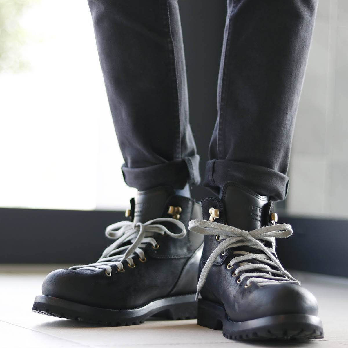 オイルスウェードとベビーカーフの二つの素材を組み合わせた都会的なトレッキングブーツです。イタリアブランドらしくボリューム感をやや抑え、ファッショナブルに仕上がっているため、幅広いシーンでお使いいただけます。