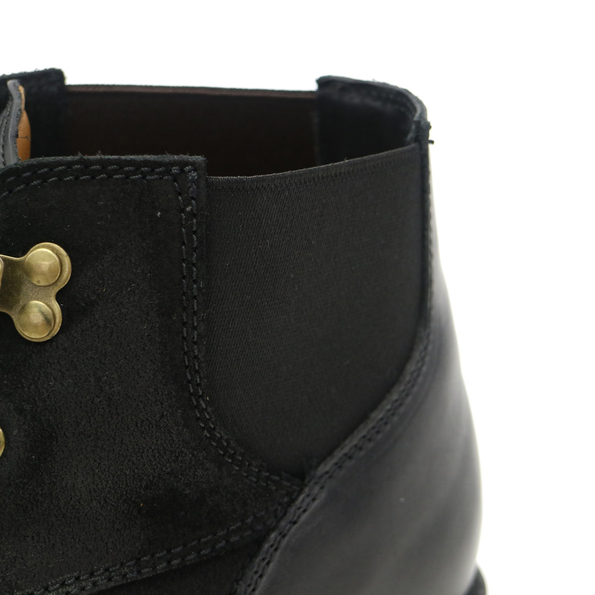 ヒール部分のベビーカーフは柔らかく光沢感もあり、足当たりの良い馴染みやすさが特徴です。また、着脱しやすいサイドゴアも付いています。