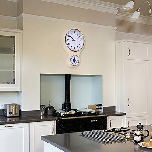 Lily's Home Retro Kitchen Timer Wall Clock, Bell Shape - Ivory