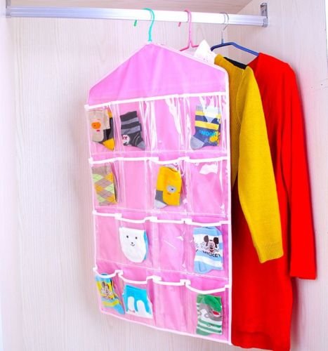 -. Title : 16 Pockets Clear Hanging Holder Shoes Sock Bra Underwear Organiser Hanger Storage Rack Closet Bag