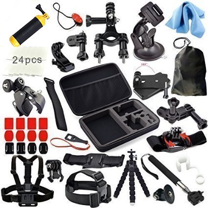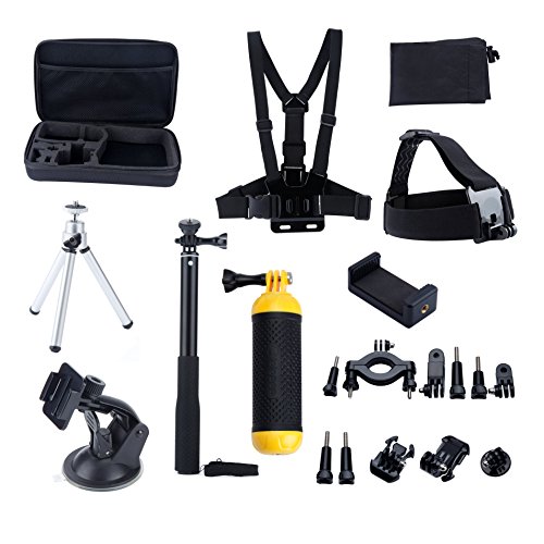 Handheld Telescopic Monopod: Adjustable ball head provides 180 degree angle to shoot. Used as selfie stick, take photos without asking other people for help, enable self-service photographs. Tripod Adapter & Thumb screw fix your GoPro Hero Camera and keep it secure. -Head Strap: Can be worn over a helmet or directly on your head to capture footage from a headlamp-like perspective. Wear your GoPro on your head or attach it to a backwards baseball cap.