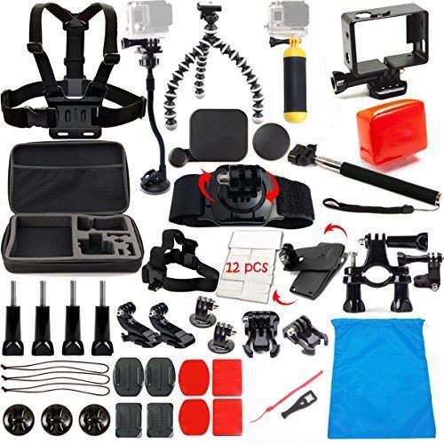 MCOCEAN 12 in 1 GoPro Accessories Kit Bundle Set for GoPro Hero 4 3+ 3 2 & GoPro Hero Action Camera: Extendable Telescopic Handheld Pole(Selfie Stick) with Tripod Mount Adapter + Chest Harness + Head Strap + Wrist Strap + Floating Hand Grip ( Floaty Bobber with Strap and Screw) + Floaty Backdoor Set (Case Backdoor with Foam and 3M adhesive) + Insurance Tether + Rubber Locking Plug + Anti-Fog Inserts, also can be used as SJCAM camera accessories (SJ4000 SJ5000 SJ6000), compatible with Xiaomi Yi action cameras. -Chest Harness/Chesty: provides an ultra immersive perspective and makes it easy to capture immersive video and photos from your chest.