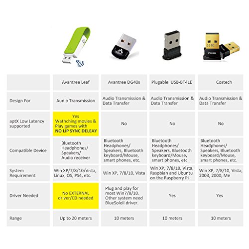 Avantree aptX LOW LATENCY Driver-Free USB Bluetooth Audio Adapter Transmitter, Wireless Dongle for PC PS4 Linux Mac, Real Time Movie & Games [2 Year Warranty]
