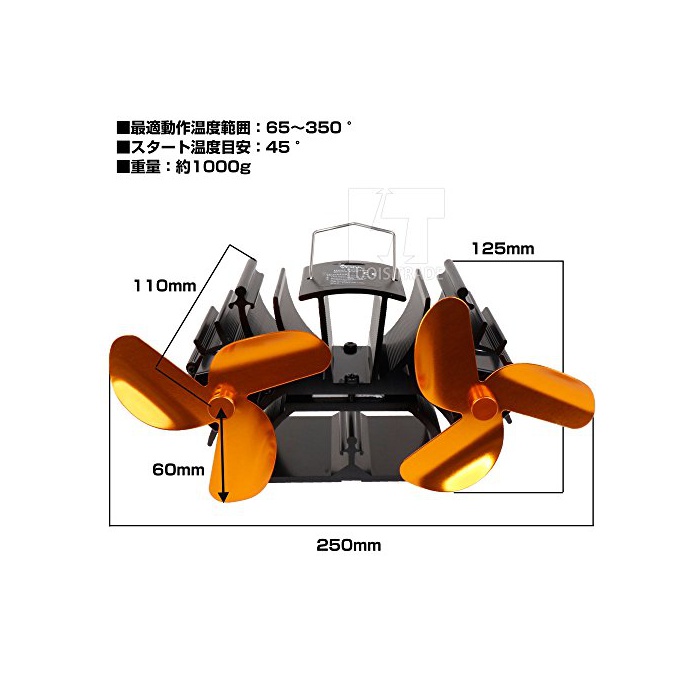 알파 라벨 에코 스토브 팬 트윈 3블레이드 2축 (골드) 석유 스토브나 신스토브 위에 두어 공기를 순환신 스토브 에너지 절약 악세사리 제벳쿠효과 에코 팬 heat 파워