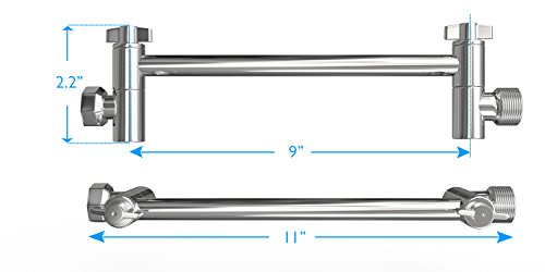Coeur Designs 11 Inch Shower Extension Arm. Solid Brass and Chrome Finish for Style and Durability. Height/Angle Adjustable for Perfect Position. Fits All Showerhead Models.Teflon Tape Included