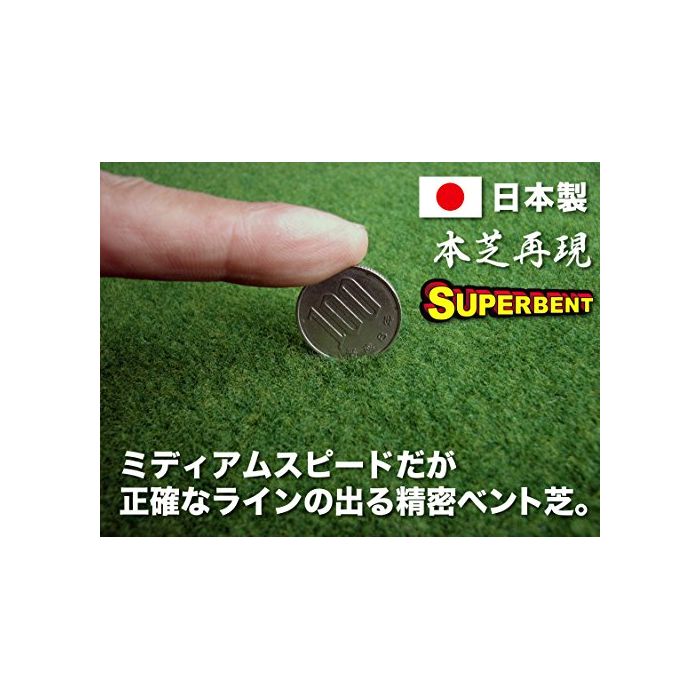슈퍼 벤트 퍼터 매트의 스피드는 미디엄(평균 적인 벤트지의 연습 그린과 같은 절묘한 터치).다양한 방향으로 카루 했다, 정하의 세세한 섬유가,본 코스의 벤트지와 마찬가지로 부드럽게 정확하게 볼을 진행시킵니다.굴러 저항이 있는 미디엄 스피드 매트에「이상한 지눈(째)」가 없 고름을 실현에 왔 획기적인 일본제 퍼터 매트입니다.