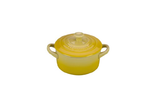 Made from durable stoneware, the cocotte features a Hard-wearing, impermeable finish fired at temperatures as high as 2192 degrees F. With a porosity level of less than 1 percent, the dish blocks moisture absorption, so there's no chipping, cracking, crazing, or rippling along the interior to worry about. Its non-porous construction also resists odors, scratching, and staining for hygienic use and optimal cooking performance. Even more, its high-quality enamel protects against metal marks and other damage, which means it's safe for cutting on with knives. Best of all, the colorful glaze on the exterior makes the dish fun to mix and match with other coordinating Le creuset pieces (sold separately), while a neutral-colored glaze on the inside offers a pleasing contrast and an optimal palette for food presentation. And thanks to its unmatched thermal resistance from -65 degrees F to 500 degrees F, the dish moves gracefully from the microwave or oven (or under the broiler) to the table for serving to the refrigerator or freezer for storing leftovers. The dish includes a secure-fitting lid-completee with concentric rings, raised Le creuset lettering, and a round-shaped knob, and its loop side handles facilitate steady transport. When finished, the cocotte cleans up easily by hand or in the dishwasher.Feature