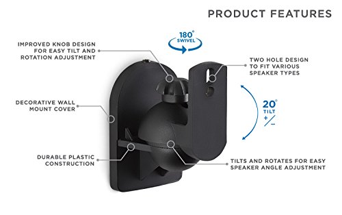 -. Binding : Electronics -. Brand : Mount-It! -. Color : Black -. Feature : Ideal for mounting home theater satellite speakers on walls or ceilings / Supports speakers weighing 10 pounds or less / Made of durable, weather resistant, injection molded fiber resin reinforced polymer / Multiple tilt and swivel pivot points allow perfect directional speaker aiming / Designed to fit all home theater satellite speakers with one threaded mounting hole, two threaded mounting holes or keyhole mounting systems -. Label : Mount-it -. Manufacturer : Mount-it -. Model : MISB292 -. MPN : MISB292 -. PackageQuantity : 1 -. PartNumber : MISB292 -. ProductGroup : Home -. ProductTypeName : AV_FURNITURE -. Publisher : Mount-it -. Studio : Mount-it -. Title : Mount-it 2 Black Universal Satellite Speaker Mounts / Brackets for Walls and Ceilings