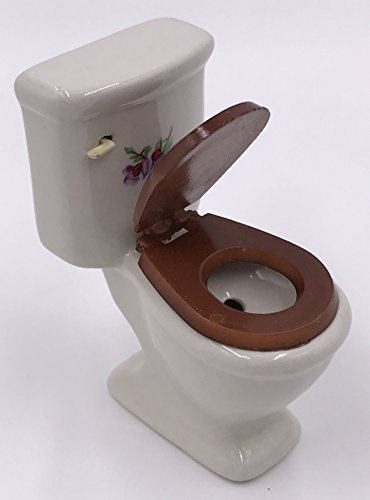 Product Description White ceramic dollhouse toilet with a realistic wooden toilet seat and decorative floral decal on the front of the toilet tank. 1:12 Scale (1" = 1'). Please see above bullet points for for measurements. 0