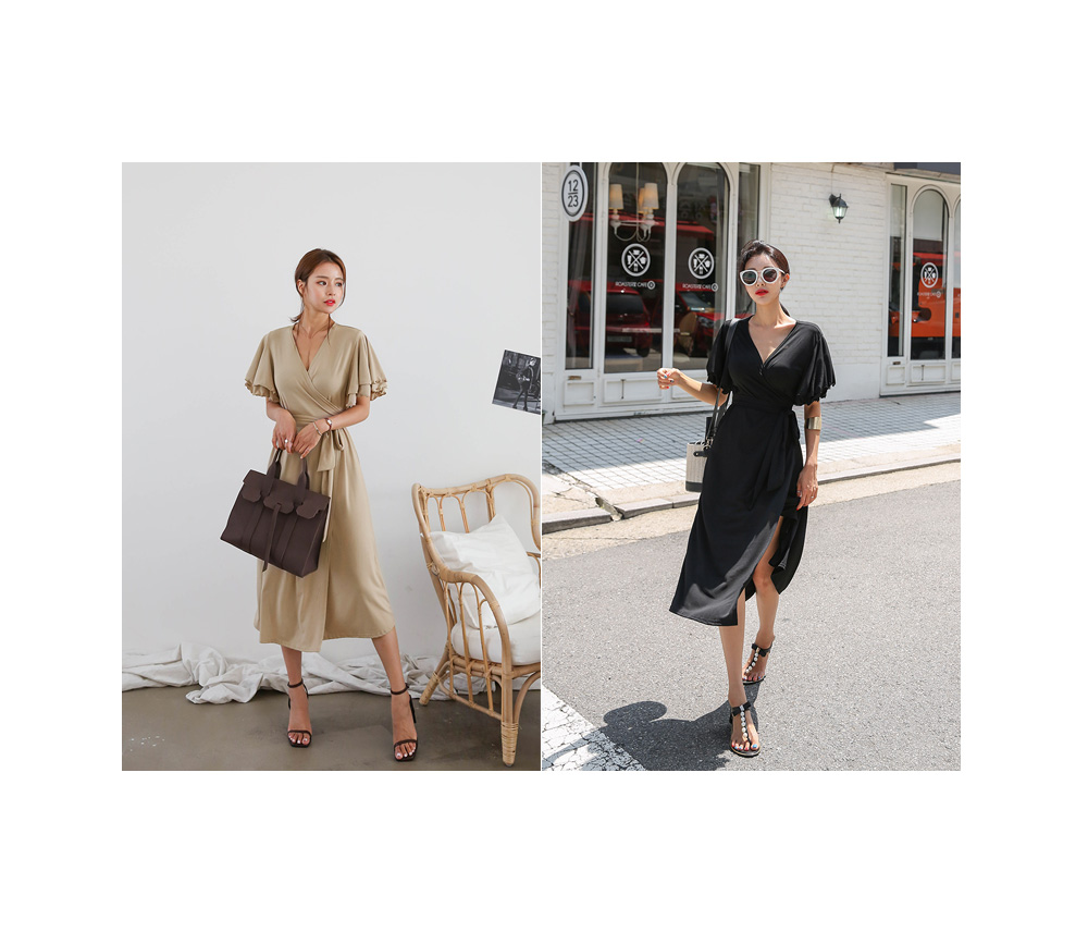 가녀려보이는 브이넥에 랩디자인으로