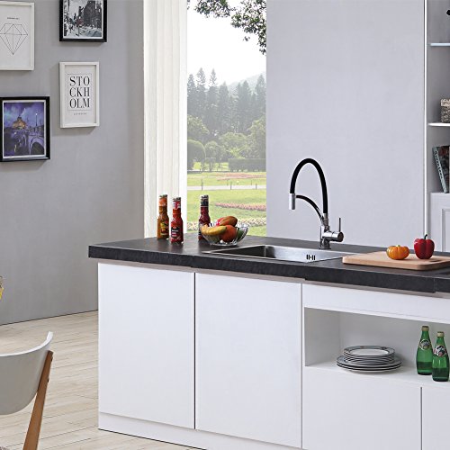 HIGH-ARCH SPOUT AND 360 DEGREE ROTATION: Offers more room pans and superior clearance for sink.