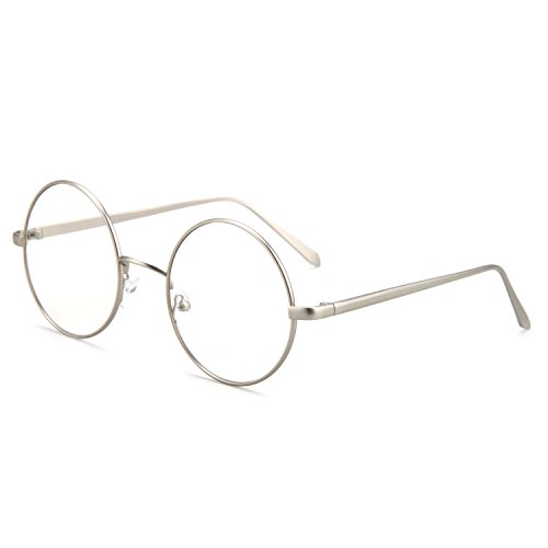 -. Feature : PRODUCT DIMENSION - Lens width:48mm (1.89") | Lens height:48mm (1.89") | Bridge width:20mm (0.79") | Frame width:120mm (4.72") | Arm length:135mm (5.31") / MATERIAL - Made by polycarbonate lens and high quality metal, in order to ensure durability and avoid breakage while engaging in recreational activity. Adjustable nose grips for comfort fit / CLASSIC DESIGN - This circle style eye glasses frames with Clear Lens, non-prescription(Rx-able). You can wear it for fashion. Of course, you can also replace them with your own prescription lenses at the local optical eyewear store / 30 DAYS MONEY BACK GUARANTEE - 100% Satisfaction Guaranteed. Please just let us know if you're not happy with your purchase within 30 days, and we'll take care of you. You have no risk to try / PACKAGE - Comes with Authentic Microfiber Pouch, Microfiber Cleaning Cloth, User Manual and Tag