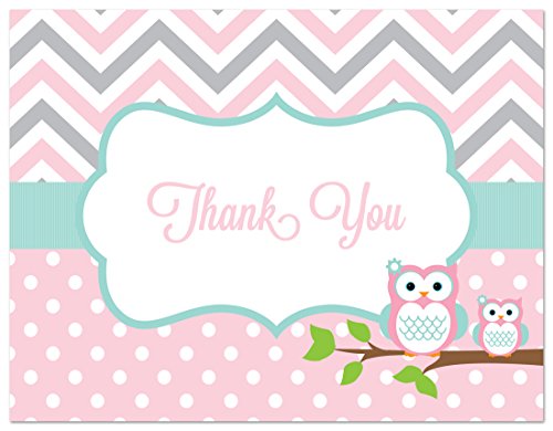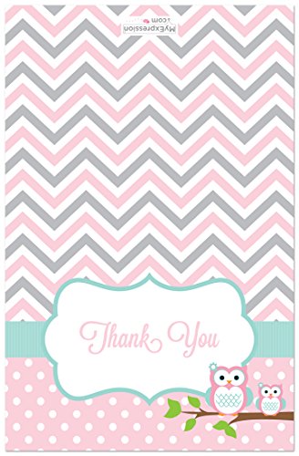 50 Cnt Pink Aqua Owl Baby Thank You Cards