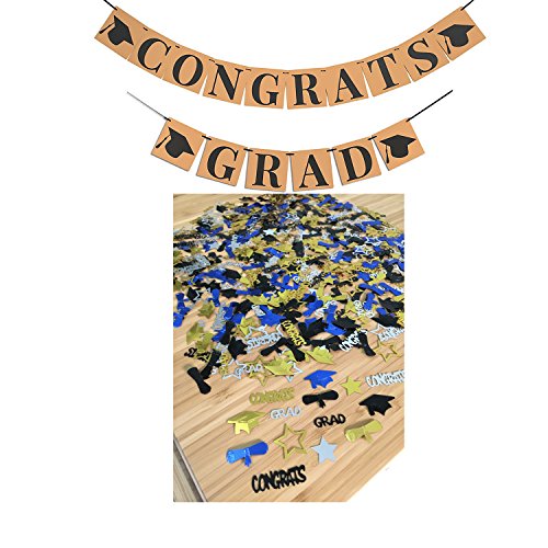 PERFECT CLASSY LOOK - Add a perfect classy look to your special day decorations as this beautiful CONGRADS GRAD Bunting banner which is made up of heavy duty kraft paper which is better than cardstock. They are durable enough to be reused many times and they fold up for easy storage. UNIQUE CONFETTI DECORATION: Confetti are a unique party decoration that can add sparkle to any bash, from kindergarten graduates to senior in high school or new college grad party