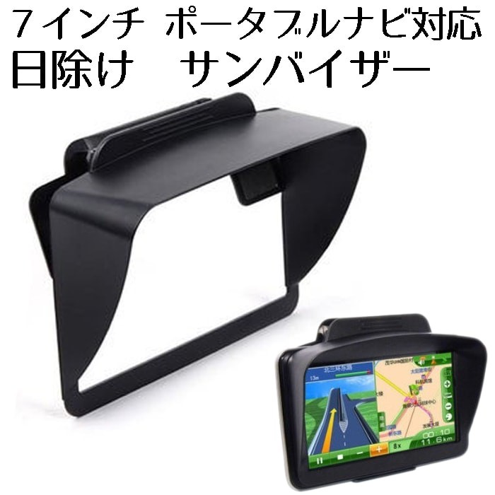 手で覆っていませんか。7インチポータブルナビ用サンバイザーです。 太陽、日光の陽の映りこみを抑え、液晶画面が見やすくなります。 取り付けはクリップ式になっており、挟み込むだけでご使用になれます。 また汎用タイプですのでほとんどのポータブルナビにご使用いただけます。 ※厚みは約15mm程度まで挟めます。 それ以上厚みのあるナビは取り付けできません。 7インチ ポータブルナビ 用 サンバイザー [サイズ(約)] 画面部 幅157mm×高さ88mm バイザー上部サイズ(シェード部) 最大63mm 最小 52mm バイザーサイドカバー部 最大52mm