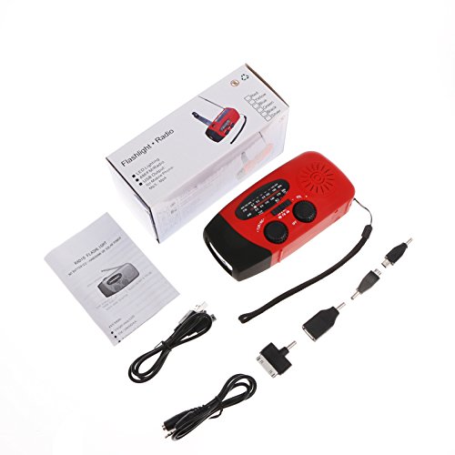 [Convenient Backup Power Supply] You can use it as a backup powerbank for your cell phones and other devices with USB port in emergency; 1 minute of hand-cranking supports over 5 minutes of cell phone talk, 15-20 minutes of continuous torch light,15-20 minutes of radio play (in medium volume); 3 Connector-to-USB converter adapters provided make it possible to charge devices with different types of USB ports.
