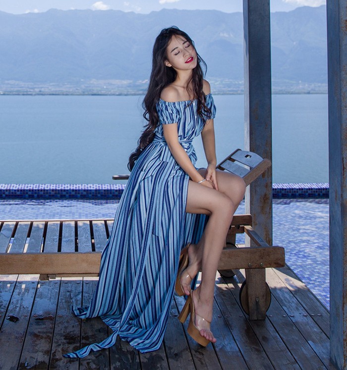 マキシワンピース 夏 レディース シフォンワンピース チュニック マキシワンピース 花柄 ノースリーブ ビーチワンピース 2018夏新作 マキシワンピース 花柄 夏 ロング丈 シフォンワンピース商品詳細素材:シフォン袖丈:半袖季節:春夏柄:ストライプ柄ネック:ボートネックカラー:ブルーサイズ:S M L産地:中国サイズ参照表S バスト90cm ウエスト70cm 着丈128cmM バスト94cm ウエスト74cm 着丈130cmL バスト98cm ウエスト78cm 着丈132cmご注意:個人採寸のため、1~3cmの誤差は正常範囲内となりますが、ご了承ください。マキシワンピース 夏 レディース シフォンワンピース チュニック マキシワンピース 花柄 ノースリーブ ビーチワンピース 2018夏新作 マキシワンピース 花柄 夏 ロング丈 シフォンワンピース