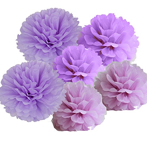 X-Sunshine 15Pcs 10" 12" 14" Multi-Colors DIY Tissue Paper Flowers Pom Poms Wedding Decor Party Decorations Pom Pom Flowers Pom Poms Craft (Purple Set)