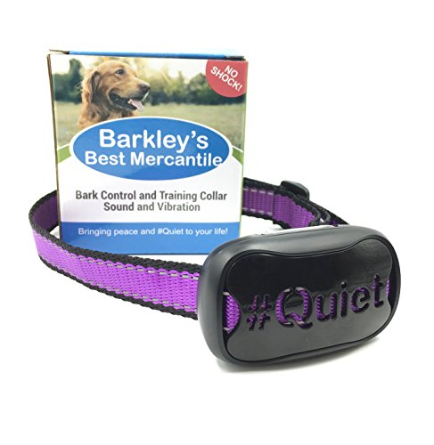 Using 7 levels of sound vibration, this stylish bark collar stops nuisance barking automatically. No painful shocks necessary. Even includes 3 unique faceplates fits nearly any breed. Love your furry friend but not their constant barking? Can't stand the thought of using a shock collar? Now you can train effortlessly still treat them like family with this Non-Shocking Bark Collar by Barkley's Best. ?Adjustable fit from 8-150 lbs ?Battery operated (6V - 4LR44) ?Available in blue or purple ?Long short probes included No Shock. No Pain. Just Safe, Effective Training. While most canine bark collars use painful shocks, your gentle training collar uses only sound and vibration - 100% safe humane. Even comes with smooth, rounded probes for added protection. Plus, you can increase or decrease the device's sensitivity according to your pet's bark. Unlike ordinary no-harm bark collars, yours is stylish customizable with 3 interchangeable #Quiet faceplates and comfortable nylon band. Teach Your Dog on Auto-Pilot This bark-deterrent collar automatically reacts to your pup's bark. No need for constant monitoring or annoying remotes. Just pop in the battery, put the collar on listen to the barking disappear. It uses 7 levels of correction to eliminate barking quickly easily: ?The first 2 barks generate sound ?At the 3rd bark, it beeps vibrates ?After each bark, the vibration lasts longer until it cycles through all 7 levels ?If barking continues, the collar rests for 1 min then starts over Buy Risk Free Try your beeping bark collar for a full 60 days. If you don't absolutely love it, we'll refund your money. No questions asked. Add to cart now regain the peace quiet you once had. 0 |