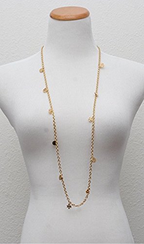 -. Feature : Beautiful gold tone Rosary Charm Necklace from / Adorned with randomly spaced charms / Measures 41" long with lobster claw clasp / Packaged with dust cover bag / MSRP of $175 from