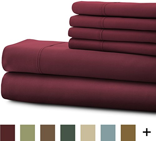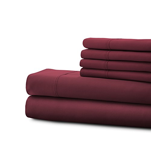 Spirit Linen Hotel 5Th Ave 6-Piece Hotel Collection Solid Luxurious Microfiber Sheet Set, Queen, Maroon