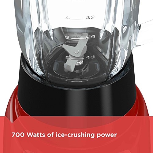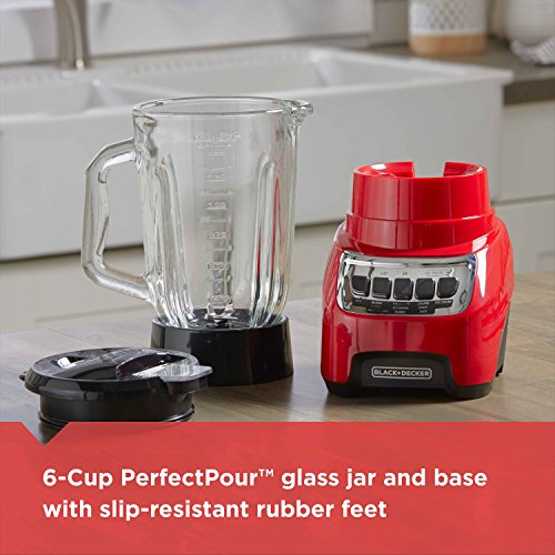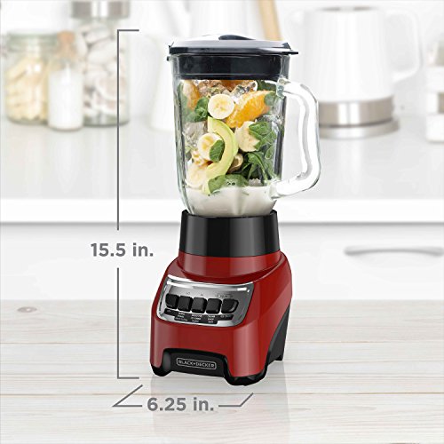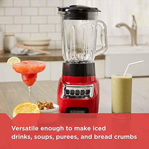 It's all in the name with the BLACK+DECKER PowerCrush Multi-Function Blender. This premium blender uses 700W of power to pulverize ice and other tough ingredients to create delicious smoothies, shakes, and more. The QuadPro Blade is versatile enough to make iced drinks, soups, purees, and even crumbs (bread, cookie, or cereal) to use in other recipes. Use the intuitive four speed control buttons to find the perfect consistency. Then enjoy easy, spill-free pouring with the hinged recloseable pour spout and PerfectPour glass jar. Plus, cleanup is easy with the Easy Clean function that uses the motion of the blending blade to loosen caked-on food and all parts are dishwasher-safe. Fast and powerful blending, no-mess serving, and easy cleanup- BLACK+DECKER PowerCrush is the only blender you need. Peak performance refers to the maximum power recorded for 100ms during blending.Feature
