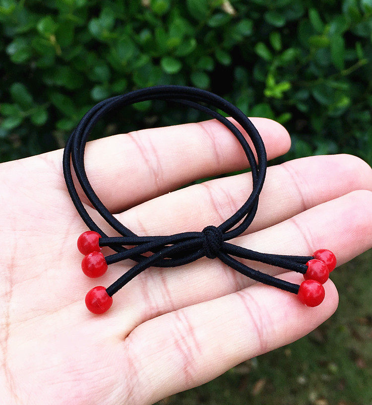 5pcs/lot Red Simulated Pearl Rubber Hair Band Cherry Elastic Hair Band