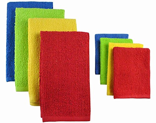 -. Title : Pack of 8 Solid P.R.Imary Colored Dish Towel and Wash Cloth Kitchen Accessory Set - Terry Cloth