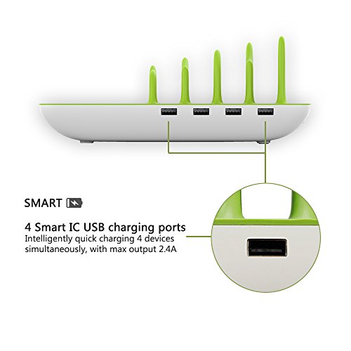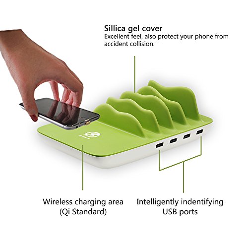 ▶Multi Charging Station: With 4 Smart IC USB Charging Ports&QI Wireless Charging Station, 4 Intelligent quick charging 4 devices simultaneously, with max output 2.4A/port, allows you charge multi devices at the same time, for the wireless charging, all you have to do is to leave your QI integrated phone on the charging station