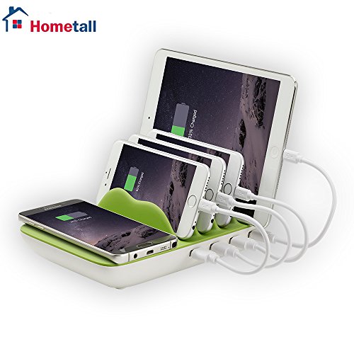 Charging Station for Multiple Devices, Hometall 4-Port USB Charging HUB QI Wireless Charging Dock Organizer with 4 Handy USB Cables for Smartphones&Tablets (Green with Cables)