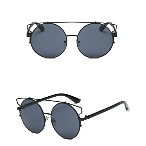 -. Title : LAYs Metal Round Frame Oversized Sunglasses Vintage Style,Black/Gray Mirror