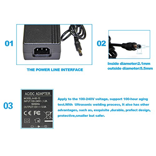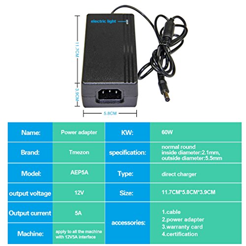 TMEZON 100V - 240V To DC 12V 5A Switching Power Supply Adapter Plug Cord For DVR NVR Security Cameras System CCTV Accessories