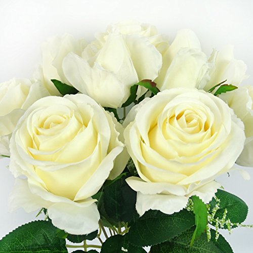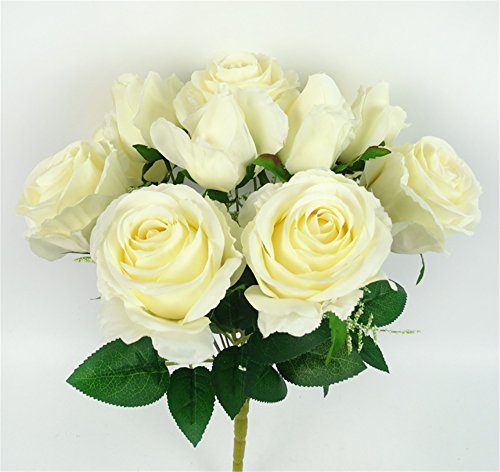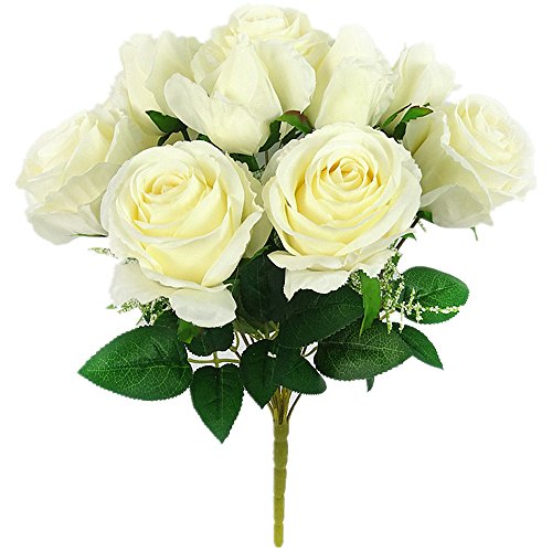 Felice Arts 12 Heads Artificial Roses Flower bride Bridesmaid hand holding bouquet Wedding Celebration DIY decoration(White)