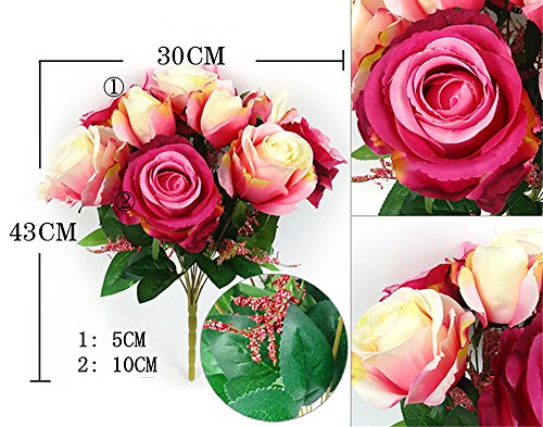 Size: The whole length: approx 43cm/16.9inch, 1 bouquet has 12 heads flowers, Large flower head diameter of 10cm/3.9inch, small flower diameter of 5cm/1.97inch.