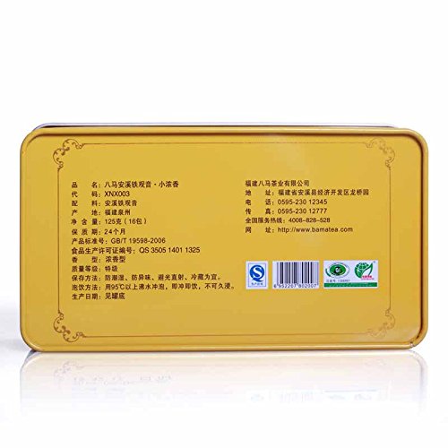 -. Feature : 125g, 15bags / XNX003 Strong Aroma / Shelf Life: 24 Month / AUTHENTIC brand,TRADITIONAL processing, ORIGIN product place! / Bama means eight horse in Chinese. Anxi Tea of Bama Co., Ltd. has originated from the time-honored brand Xinji. The predecessor Mr. Wang is the descendant of Shirang Wang in Qing Dynasty, who discovered and cultivated "Tie Guan Yin" as the worldwide famous tea.Bama has been the largest manufacturer of Anxi Tie Guan Yin tea in China. Their tea manufacturing management is top in China, and they have our own hereditary and proP.R.Ietary blending and roasting processes.Meanwhile, Bama Tea has won many honor and P.R.Ize. In the first competition of AnXi Tie Guan Yin Tea, Bama Tea became the winner of Top 10 enterP.R.Ises and top 10 brands.