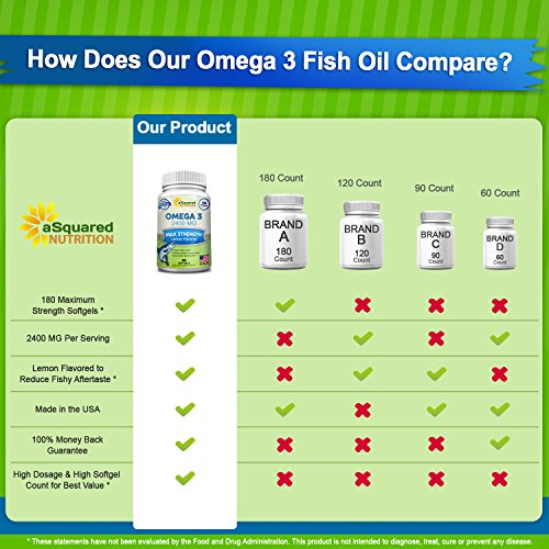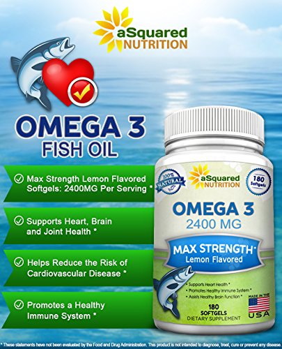- Feature : BEST PREMIUM OMEGA 3 FISH OIL PILLS - This max strength (2400mg) Omega 3 delivers a high potency concentration of essential fatty acids in every serving - plus each bottle contains 180 lemon flavored, burpless, high absorption capsules! Other brands offer half for a much more expensive price! Plus, our product is backed by our best in the industry 100% MONEY BACK GUARANTEE. / HIGH QUALITY, PURITY, and POTENCY -. Our premium Omega 3 is molecularly distilled for maximal purity so that it is free of any heavy metals and toxins. Our fish oil delivers a higher concentration of DHA and EPA compared to other cheaper brand alternatives. Each serving of 2 softgels contain 860mg of EPA and 430mg of DHA! / BURPLESS LEMON FLAVOR - 100% NATURAL - Sourced from deep blue sea, our high concentration Omega 3 supplement is easily digested with a gentle lemon flavor and premium enteric coated, burp free coating which makes sure there is NO FISHY AFTERTASTE, nausea, or gastrointestinal irritation - a fantastic, everyday fish oil supplementation! / MADE IN THE USA - HIGHEST SAFETY QUALITY STANDARD - Our product is molecularly distilled and completely free from heavy metals, toxins, mercury, and other contaminants. We go the extra mile to ensure our supplements have passed extensive quality control testing before being bottle and sold - and never contain fillers, binders, or potentially harmful preservatives or GMOs.. We use only FDA regulated GMP certified manufacturing facilities in the USA. / 100% SATISFACTION GUARANTEE - each of our Omega 3 xl bottles contains 180 pills, which makes for an ultra long lasting supply! Our easy to swallow Fish Oil vitamins for men, women, and kids are ideal for joint support, heart health, nervous system function, cardiovascular health, eyesight, improved mood & focus, less daily stress, weight loss, reducing inflammation, improved bone health, cholesterol, blood pressure, colon cleansing, hair, skin, and many more benefits!
