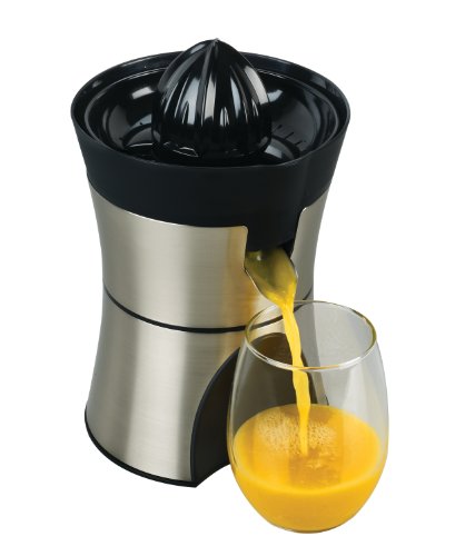 Enjoy all your favorite citrus juices without a hassle with a 40-watt automatic citrus juicer. With 2 individual juicing cones for small and large citrus fruits you can juice everything from limes to grapefruit with maximum juice extraction. The auto-reversing jucing action squeezes every last drop of juice from your fruit with just a light pressing action. The sleek, upright design fits even tall juice glasses beneath a snap-up juice spout that helps keep drips and spills off your counters. Cleaning is easy with a full range of dishwasher-safe parts, while the built-in cord storage helps keep counters neat.Feature