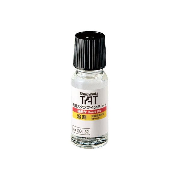 強着スタンプ台タートの盤面硬化や付着したインキのネバリ、糸引きを解消するための溶剤です。ゴム印の洗浄用としても使用できます。 製造国:日本 内容量:55ml 仕様:指定可燃物 ※サプライヤー直送品 ご注文後3~4営業日後の出荷となります【商品名】Shachihata シヤチハタ 強着スタンプインキ タート 速乾性 溶剤 小瓶 SOL-1-32