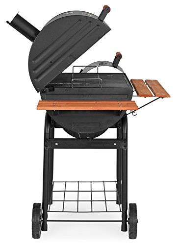Additional features include temperature gauge, storage rack and 2 wheels for easy transport. Heavy Duty Steel Construction