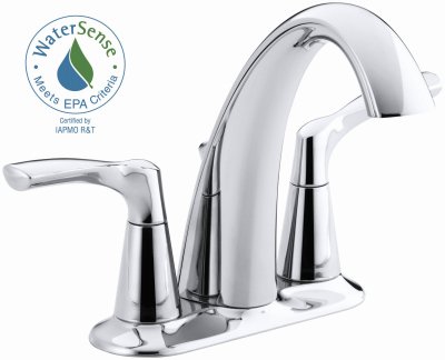 -. Feature : Two-handle centerset lavatory faucet for 4 inch centers / Kohler ceramic disc valves exceed industry longevity standards two times for a lifetime of durable performance / Solid metal construction for durability and reliability / Kohler finishes resist corrosion and tarnishing, exceeding industry durability standards two times / Fluid design lines for ease of cleaning