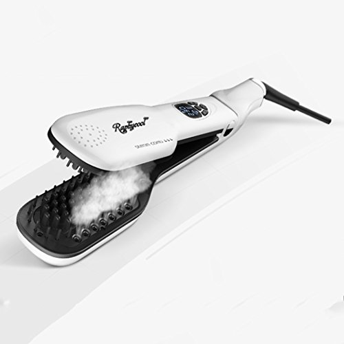 -. Feature : New Generation Magic Hair Straightening Tool -- Patent Design, First Advent on Amazon. Two Brushes Combine a Clip Style. 160% Effective than the Popular Hair Straightening Brush, Healthilier than Traditional Flat Straighter Iron. / Creative Steam Function Superiority -- This Unprecedented Brush Straighter is Designed with Water Tank and 7 Mini Vent Holes, Which can Steam 15 Minutes Continuously with 4.5g / Min Water Gas. Powerful Steam Permeates your Hair Fully and Provides a 360 Degree Nourishment. / 5 Adjustable Temperature Selection Level with LCD Display -- Suitable for All Kinds Hair Type. Set the Ideal Temperature according to Hair Condition. Note this item Only Works after the Hair is Dry. You can also Apply Some Raphycool Hair Essential Oil Before Styling and this will Enhance the Result. / Healthy Ceramic Heater & Comfortable Feeling -- Ceramic Heater Offers Even Heating to Hair. Getting Hair through the Brushes, it will not Pull or Damage Hair Like an Iron. Large Amount of Negative Ions will be Released in the Process, Combining the water, Which will Nourish Your Hair. / Easy to Operate -- Start Up this Eletric Hair Styling Double Plates Comb by Pressing on the Power button for Three Seconds. Shift the Metric Mode from Celsius System to Fahrenheit Degree Freely just by Pressing the Steam button for Seconds.