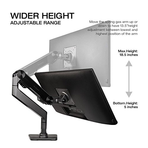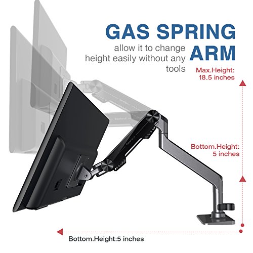 ARM FLEXIBILITY: Monitor arm adjust effortlessly up to 23.5"of arm extension and 18.5"of height and easy to use.
